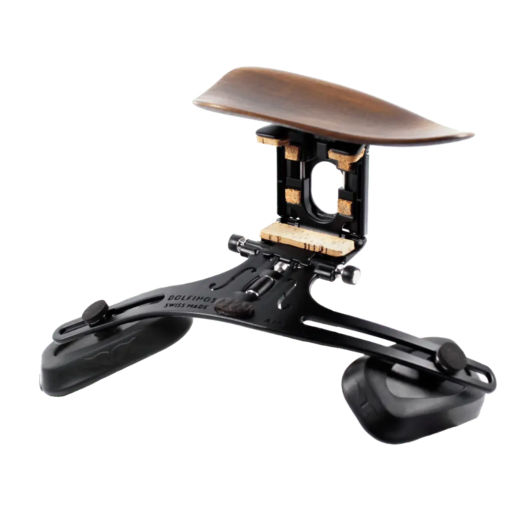 Die DOLFINOS Bratschenstütze ist ein Swiss Made Produkt, das in Zusammenarbeit mit führenden wissenschaftlichen Institutionen entwickelt wurde und verschiedene bahnbrechende Innovationen beinhaltet. Die wichtigste Innovation ist, dass die Standard-Schulterstütze in zwei Kissen aufgeteilt ist. Jedes Kissen ist in der Lage, sich unabhängig vom anderen Kissen zu bewegen, was eine maximale Anpassung an die Körpergeometrie ermöglicht.
