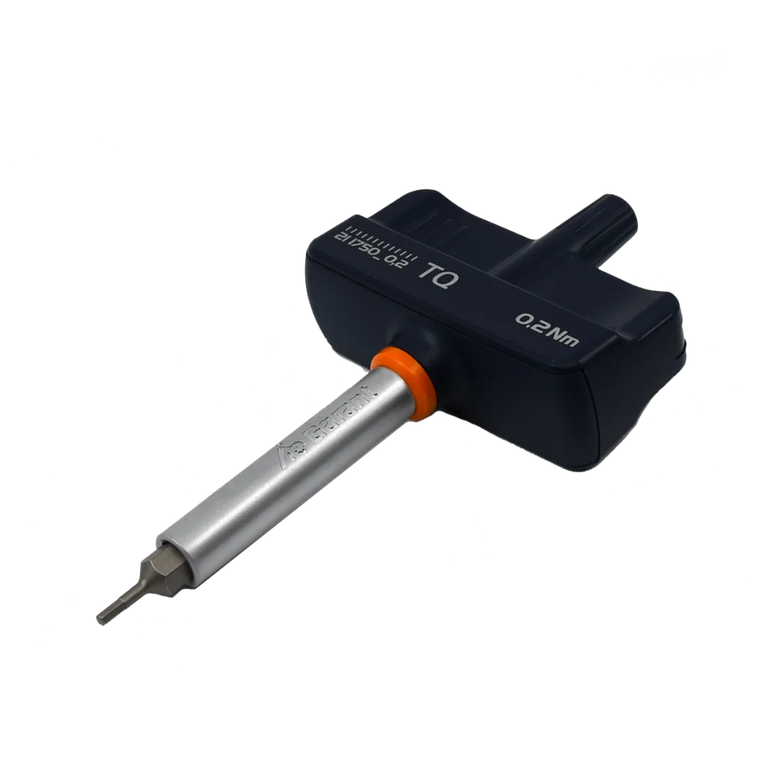 Dieses Werkzeug hat einen voreingestellten Drehmoment und stellt sicher, dass der Anzugsdruck von 0.2Nm nicht überschritten wird. Unsere Messungen haben gezeigt, dass ein Anzugsdruck bis zu 0.4Nm für unser Stützen zulässig ist, aber in den meisten Fällen sind 0.2Nm ausreichend.