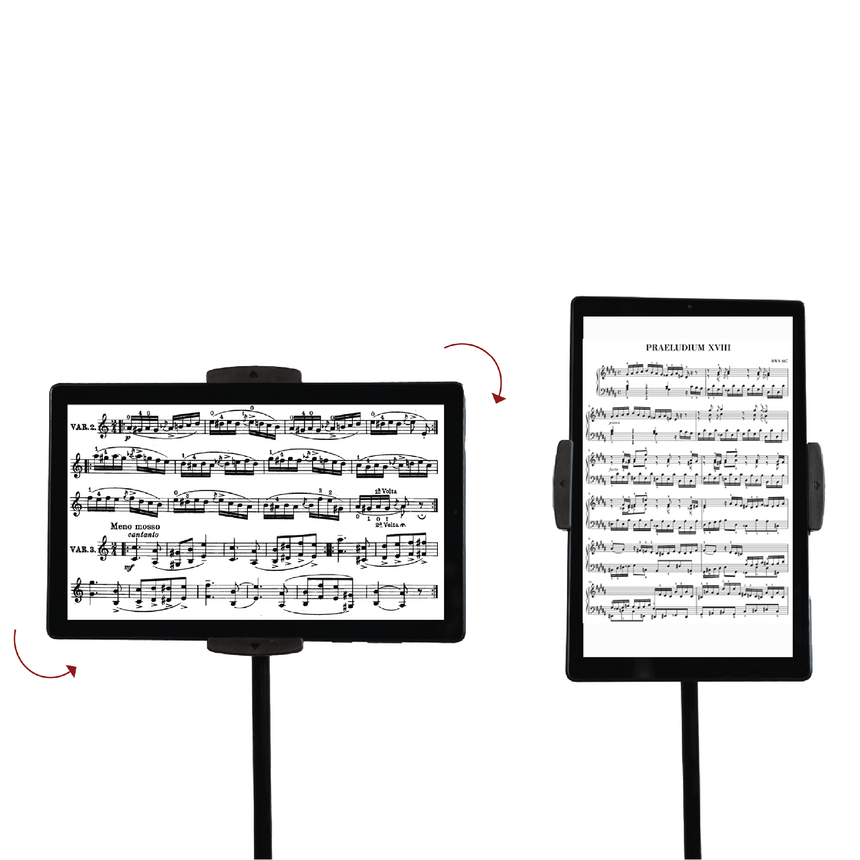 • incl. 1x tablet holder, 1x tabletop for sheet music, 1x tripod, 1x carrying bag