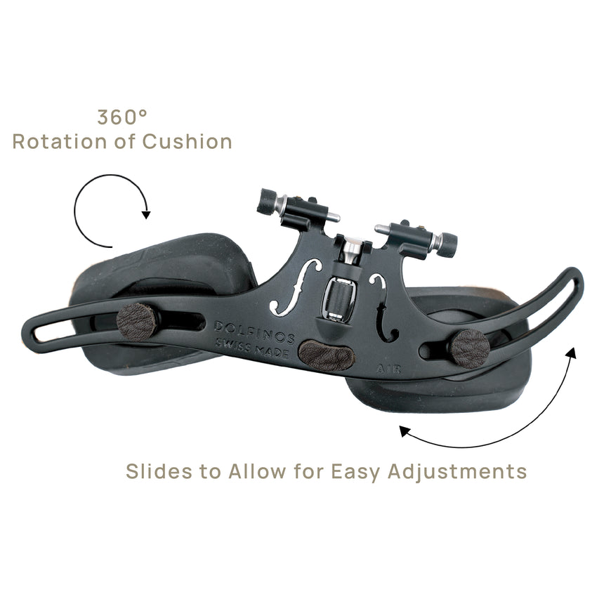 The DOLFINOS chinrests are made of wood and can be height-adjusted by up to 1 cm for optimal comfort. Their elegant shapes have been defined through extensive biomechanical research to meet the needs of 90% of all high-string players.